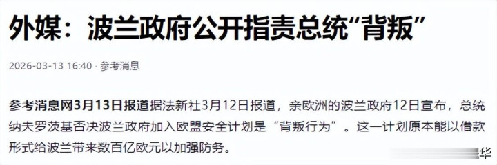 政府骂总统“反水国度”,总统斥政府“出卖主权”,双方在公开场合相互责备、舌剑唇枪,闹得东说念主尽都知,不仅让波兰的国度形象受了影响,连国内的政策自如性都被打乱了——当今没东说念主知说念,波兰到底要不要加入欧盟的安全运筹帷幄,后续的军事设立和社交方针,也变得扑朔迷离。