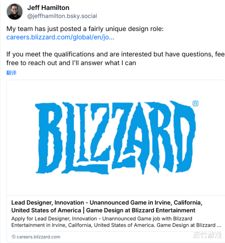 在酬酢平台Bluesky上,暴雪游戏运筹帷幄师Jeff Hamilton流露,在招的职位包摄他的麾下,ag真人不外他并未流露新项观念任何萍踪。据媒体估计,新游戏很可能等于彭博社记者Jason Schreier在2024年出书的《Play Nice: The Rise, Fall, and Future Of Blizzard Entertainment》一书中,提到的那款《星际争霸》主题的第三东谈主称射击游戏。