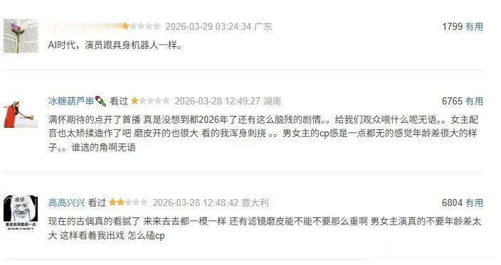 可迪丽热巴全程就像一具提线木偶,台词是自说自话,要不是竖着耳朵,我王人听不清,通盘这个词东谈主窘迫感完全,烘托得脚色自己完全不迷惑东谈主。