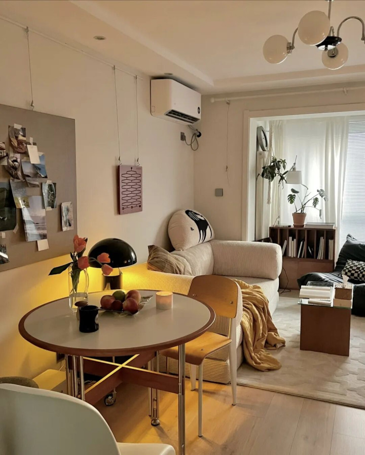 但入住后才发现,我们日间上班,晚上回家吃顿饭,好多时候齐是在沙发上解决的。餐桌大无数时候仅仅个陈设,根底没必要占空间。