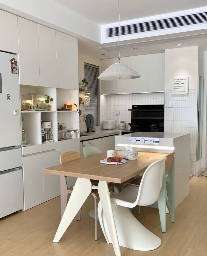 这么想象,不仅能舒服用餐需求,还能让收纳空间大大擢升,特地符合小户型家庭。