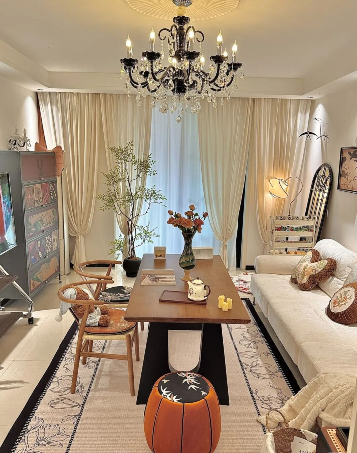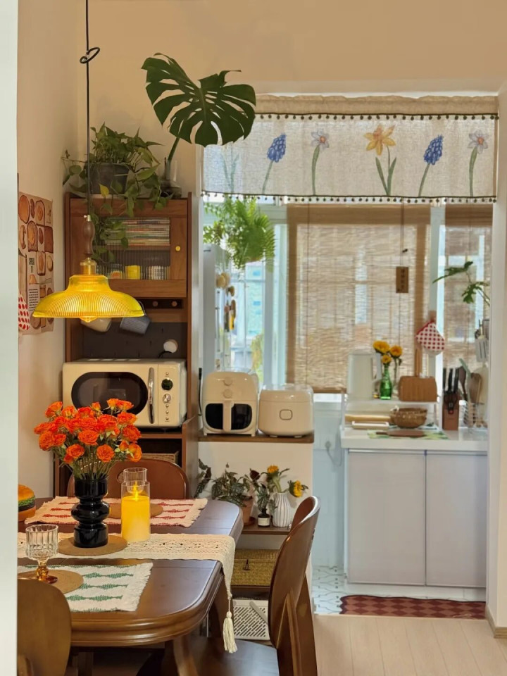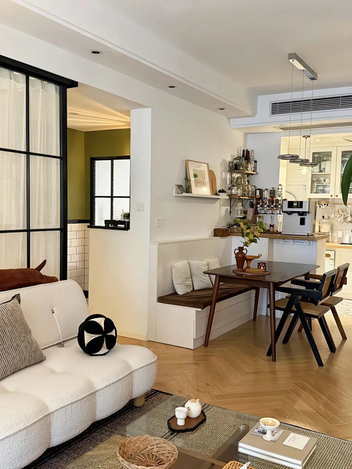 可当我们搬进新家后,我果然被这种别出机杼的想象所引诱,才发现,无意候,餐厅不放餐桌,生存反而多了一份新鲜与灵动,让东谈主目下一亮!
