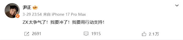 夺冠后,演员尹正,同期亦然领有专科赛车派司、签约干事车队、参与国内顶级赛事的硬核骑士公树立文道贺,称张雪太争光了,我方要冲了,用行径救济!