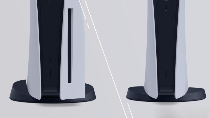两款PlayStation主机侧面 / 左侧带光驱槽,右侧无光驱槽的主机